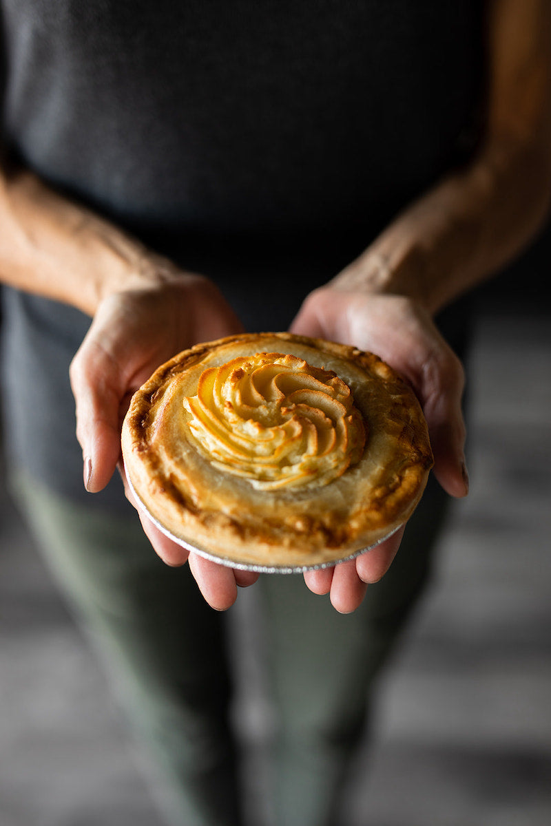Bake from frozen. This is only a guide, all ovens are different! Baking more pies/rolls at a time will change the amount of time needed to reach 165 F internal temperature!